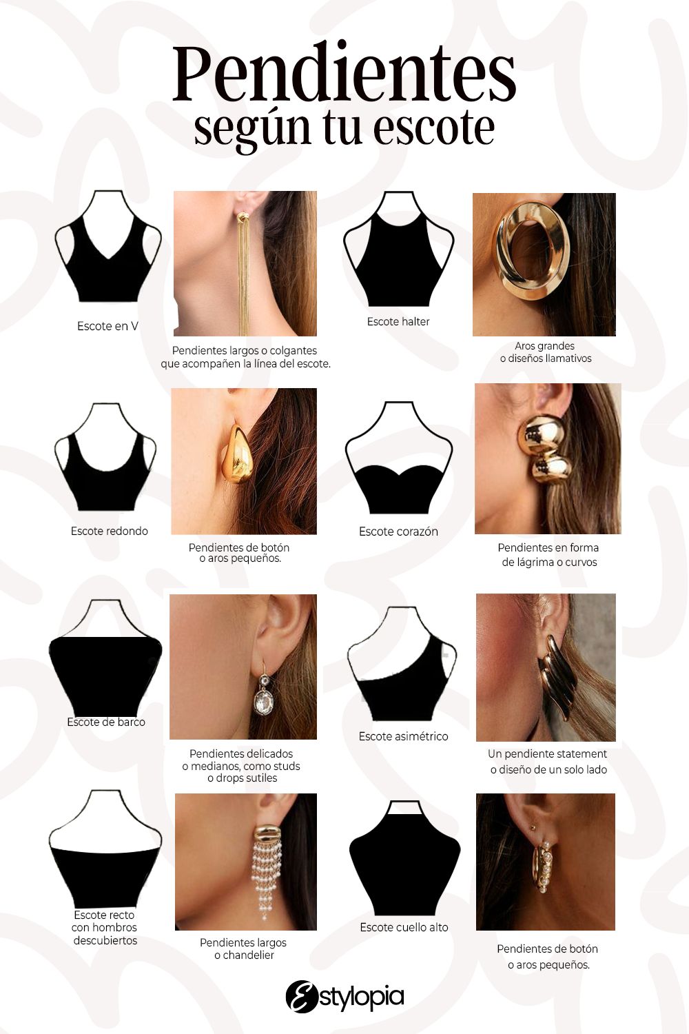 Los accesorios son mucho más que adornos: son el detalle que puede transformar un look sencillo en una propuesta llena de estilo y personalidad. Entre ellos, los collares y los aretes tienen un papel especial, pues enmarcan el rostro y resaltan la silueta, creando un lenguaje visual que acompaña cada movimiento. Lo interesante de estas piezas es que no se usan de manera aislada. Su impacto depende de cómo dialogan con el peinado y con el escote, dos elementos que definen la manera en que se percibe la figura. Un mismo conjunto puede adquirir un aire sofisticado, romántico o atrevido simplemente al variar la combinación de accesorios. Descubre cómo elegir accesorios según tu peinado y escote de ropa. Los collares tienen la capacidad de guiar la mirada hacia el cuello y el escote, mientras que los aretes iluminan el rostro y aportan carácter. La elección de cada uno abre posibilidades distintas: delicadeza, fuerza, elegancia o frescura. Al integrarlos con el peinado y el tipo de escote, se logra armonía y equilibrio, evitando que el estilo se vea recargado o desordenado. Más allá de la moda, estos accesorios son símbolos de identidad. Pueden evocar recuerdos, marcar momentos especiales o convertirse en la firma personal de quien los lleva. Por eso, elegirlos con intención es también una forma de expresión: cada collar y cada par de aretes cuentan una historia, por eso es importante que sepas cómo elegir accesorios según tu peinado y escote de ropa. Los collares tienen la capacidad de guiar la mirada hacia el cuello y el escote, Este post es una invitación a descubrir cómo los accesorios dialogan con tu estilo. Las imágenes que lo acompañan mostrarán combinaciones inspiradoras, revelando cómo un detalle puede potenciar tu presencia y ayudarte a proyectar exactamente lo que deseas. Porque al final, los accesorios no son solo complementos: son piezas de arte que hablan por ti.