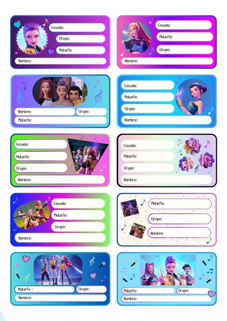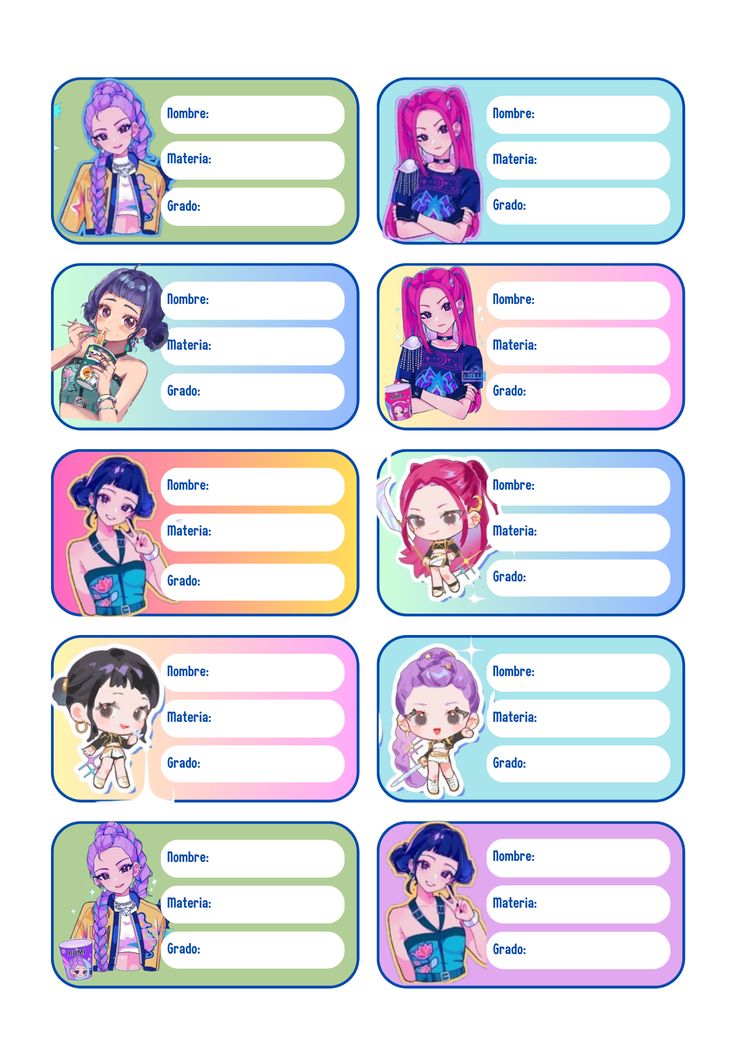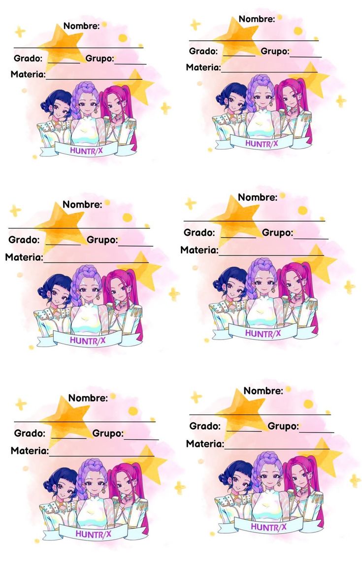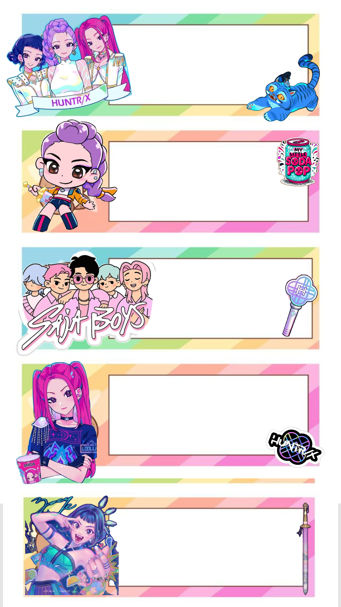 En un universo donde la música no solo entretiene, sino que transforma, Las Guerreras K-pop emergen como íconos de una nueva narrativa animada que fusiona el arte pop coreano con la fantasía épica. Por eso dejamos para ti varias etiquetas para cuadernos de las guerreras K-pop. La historia gira en torno al grupo ficticio HUNTR/X, conformado por tres jóvenes artistas: Rumi, Mira y Zoey. De día, son estrellas del K-pop que deslumbran con coreografías electrizantes y canciones que lideran las listas globales; de noche, se convierten en valientes cazadoras que enfrentan fuerzas demoníacas para proteger a la humanidad.