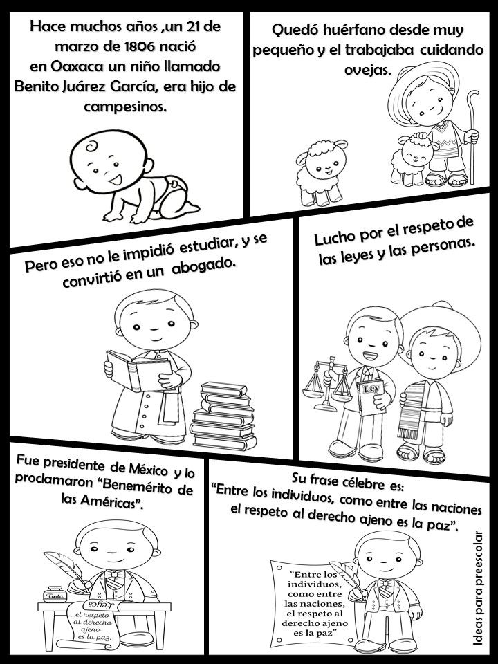 Cada 21 de marzo celebramos el natalicio de Benito Juárez, uno de los personajes más importantes de la historia de México. Juárez nació en 1806 en San Pablo Guelatao, un pequeño pueblo de Oaxaca. Desde niño enfrentó muchas dificultades, pero gracias a su esfuerzo y dedicación logró convertirse en un gran líder que defendió la justicia y la igualdad. Benito Juárez provenía de una familia humilde y hablaba zapoteco, su lengua materna. Cuando era pequeño, apenas sabía leer y escribir, pero tenía un gran deseo de aprender. Con mucho trabajo y perseverancia, estudió leyes y se convirtió en abogado. Más tarde, llegó a ser presidente de México, demostrando que con esfuerzo y valentía se pueden alcanzar grandes sueños.